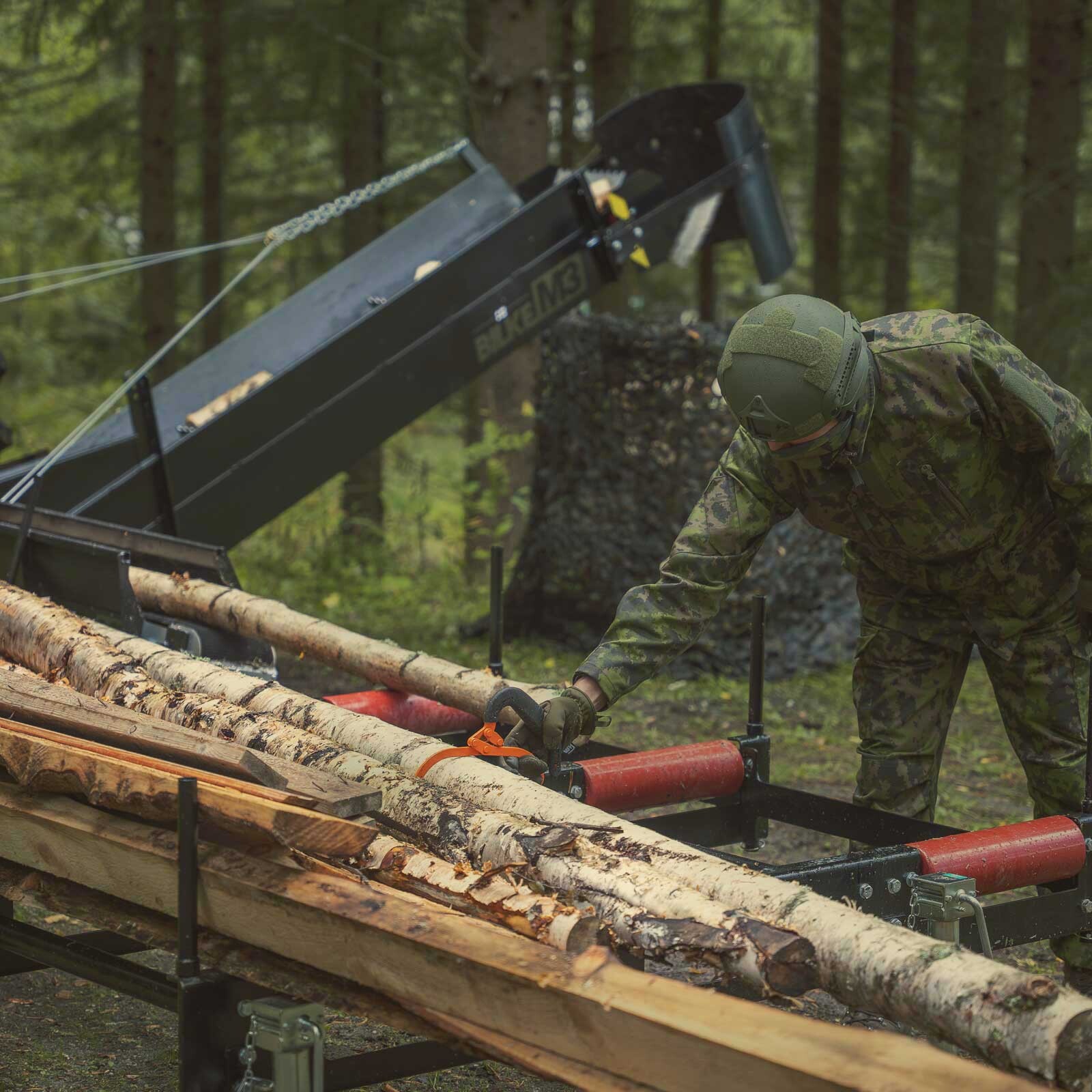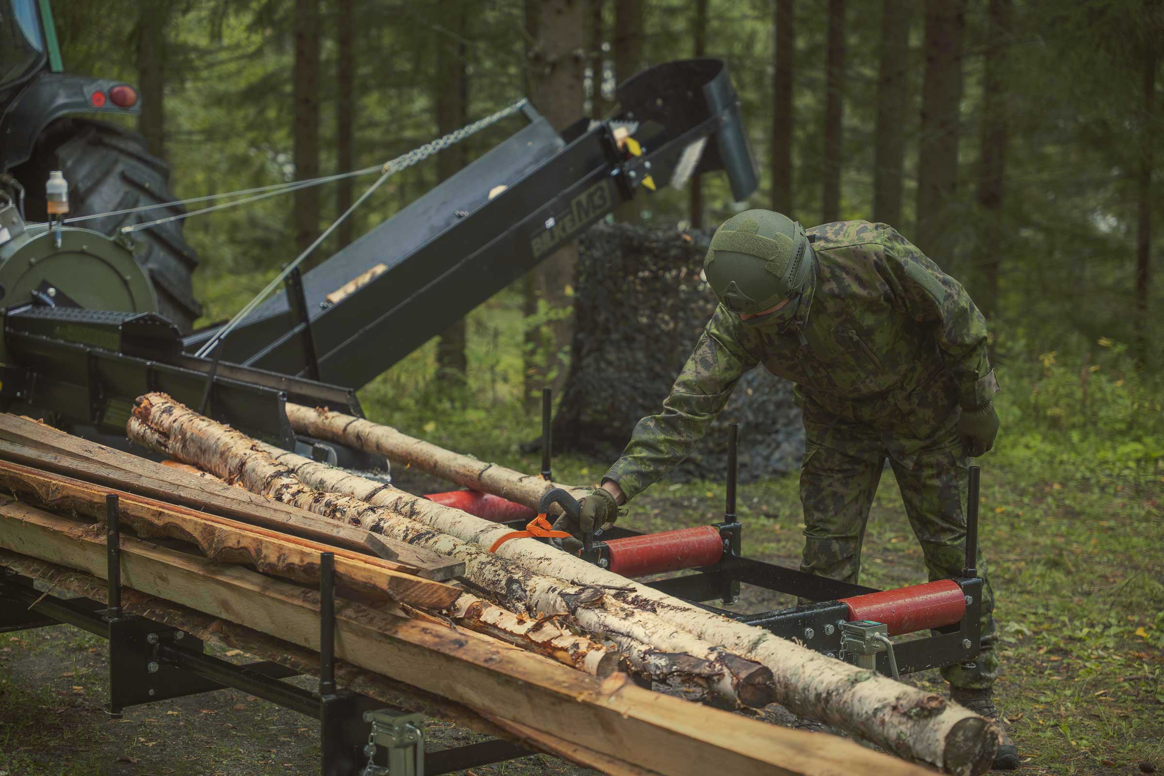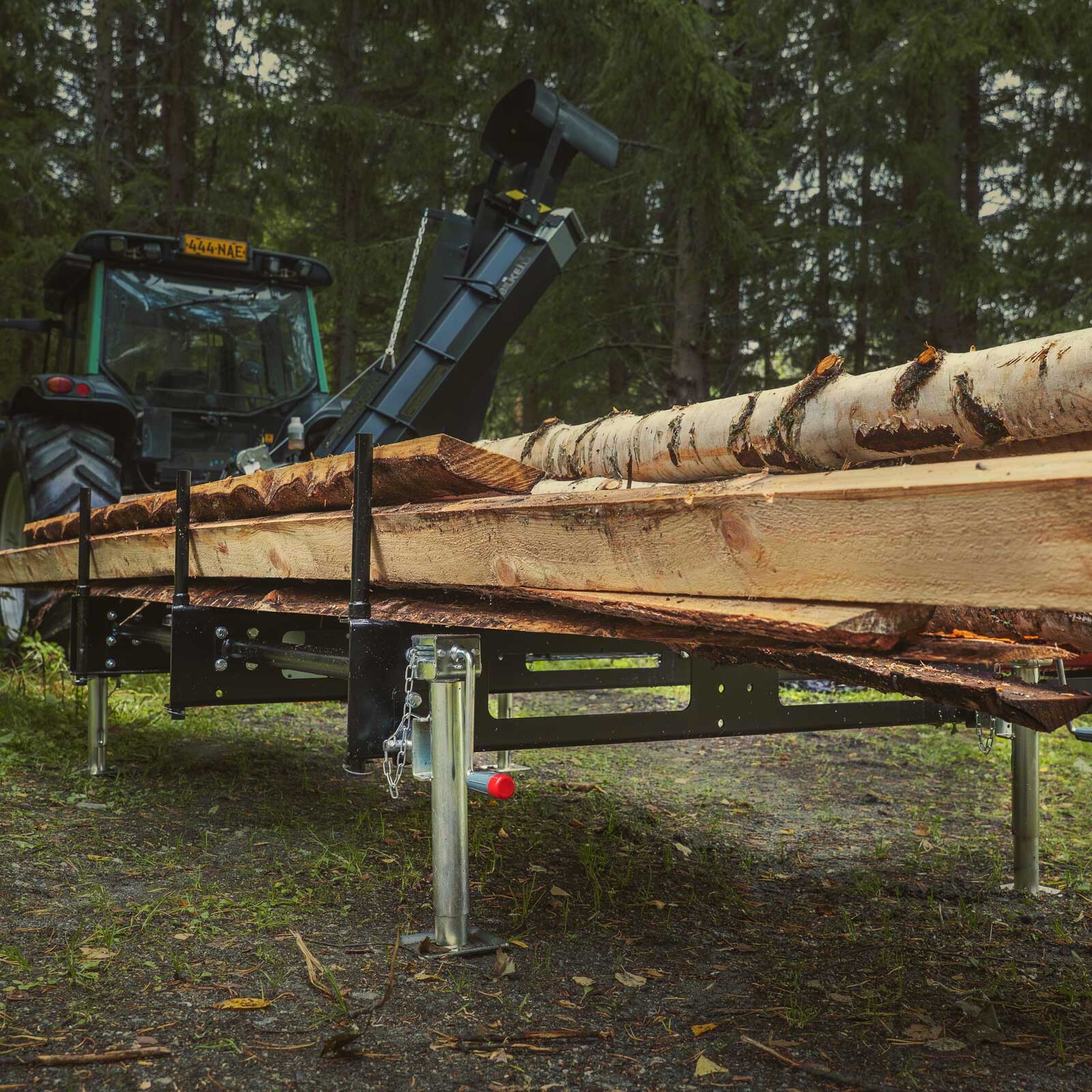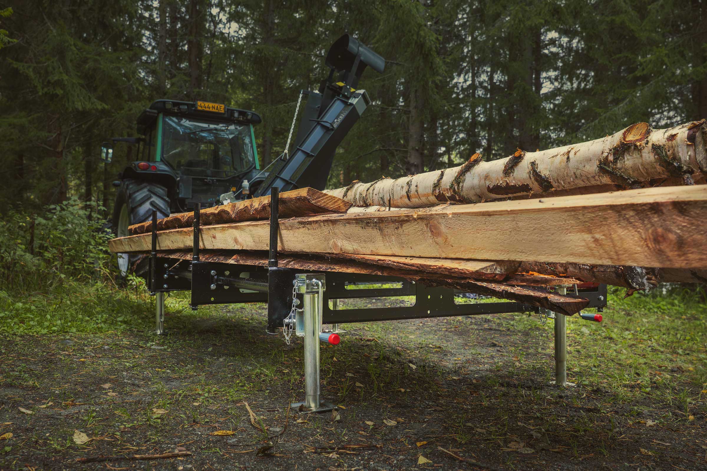 Rankatelineen avulla puutavara on aina sopivalla työskentelykorkeudella, eikä puita tarvitse enää nostella maasta käsin. Tämä säästää selkää, parantaa työturvallisuutta ja lisää pilkkeen valmistuksen sujuvuutta etenkin pidemmissä työrupeamissa.